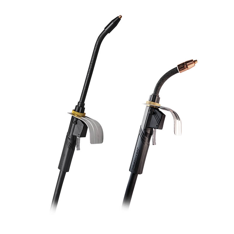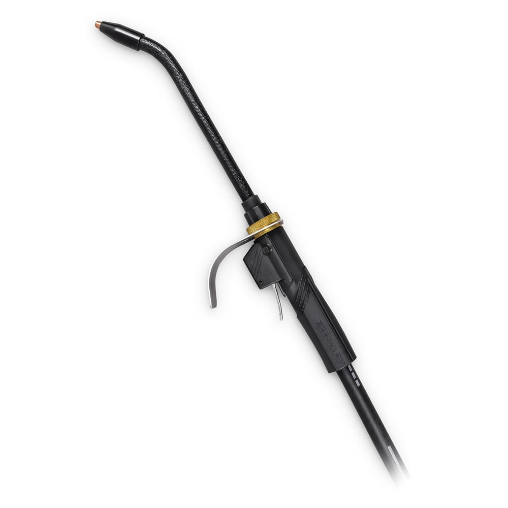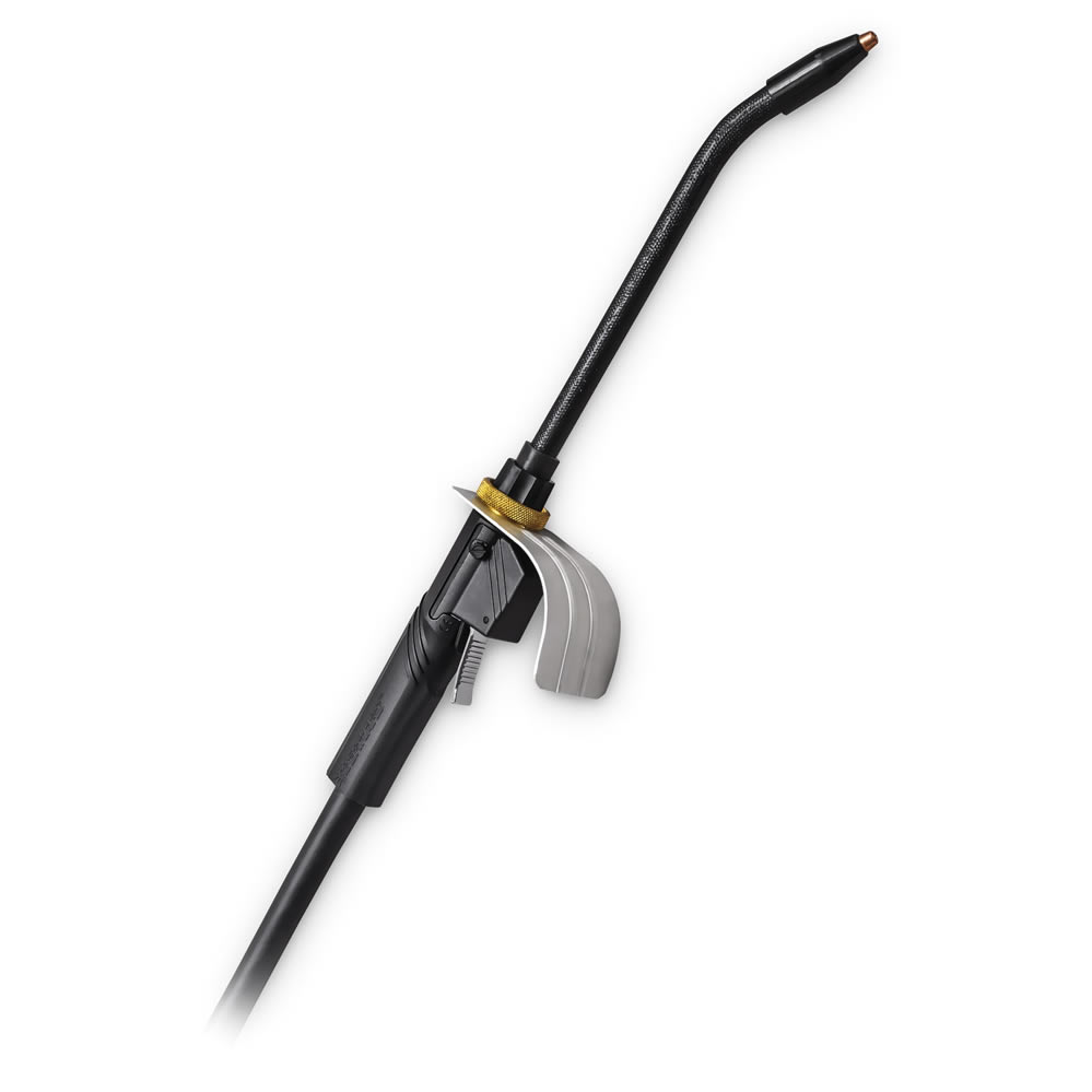 Our IronPro self-shielded flux-cored gun meets the demanding needs and harsh environments of construction, shipbuilding, heavy manufacturing and rental applications. Triggers are non-metallic and absorb less heat. The triggers are also made with a sealed micro switch that helps keep out dust and dirt to provide a long-lasting work life.