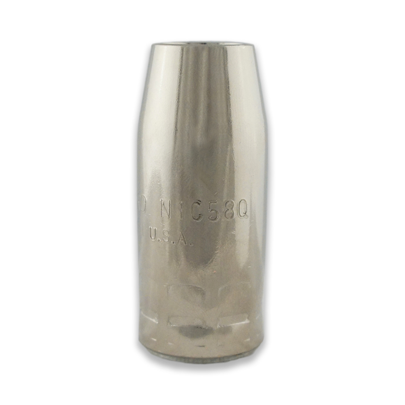 Features a removable nozzle cone that lowers downtime and consumable costs by allowing operators to replace only the cone, the most frequently damaged part of the nozzle, without removing and replacing the entire nozzle and contact tip